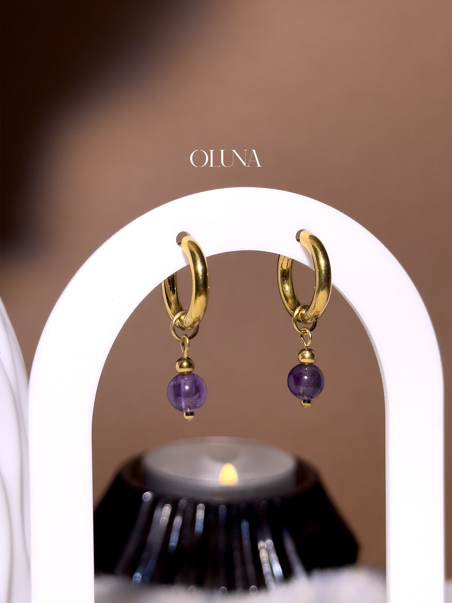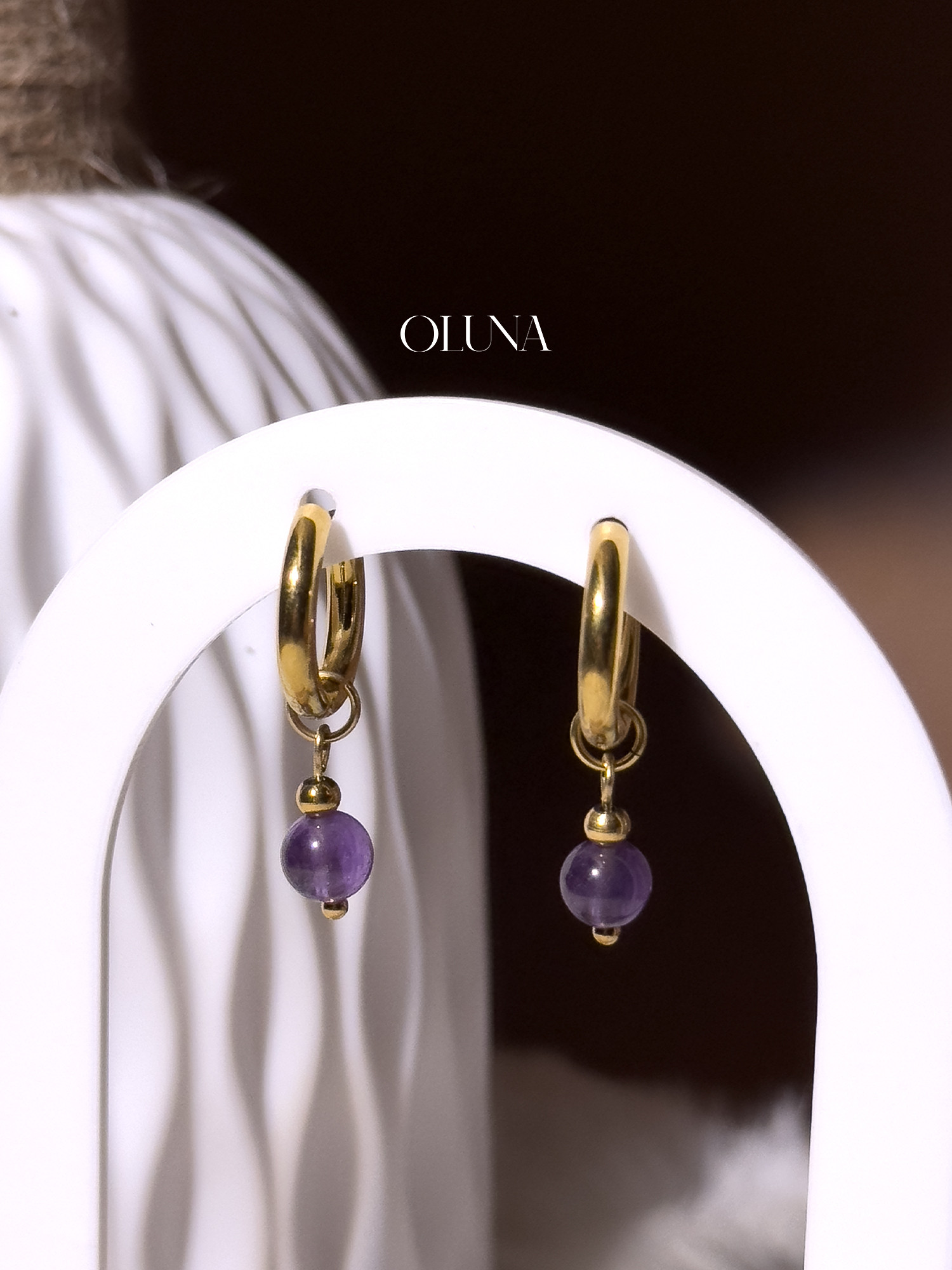 Les créoles Améthyste Clara allient simplicité et énergie apaisante. Élégantes et faites main, elles vous accompagnent dans les moments de stress et de surmenage mental.