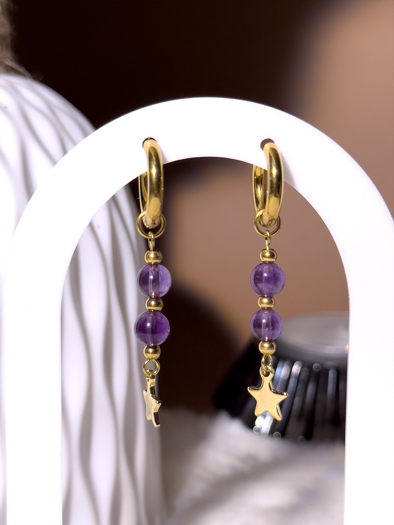 Les créoles Améthyste Nora apportent douceur, sérénité et équilibre émotionnel tout en illuminant votre visage. Un bijou fait main pensé pour apaiser l’esprit et accompagner votre quotidien avec légèreté.