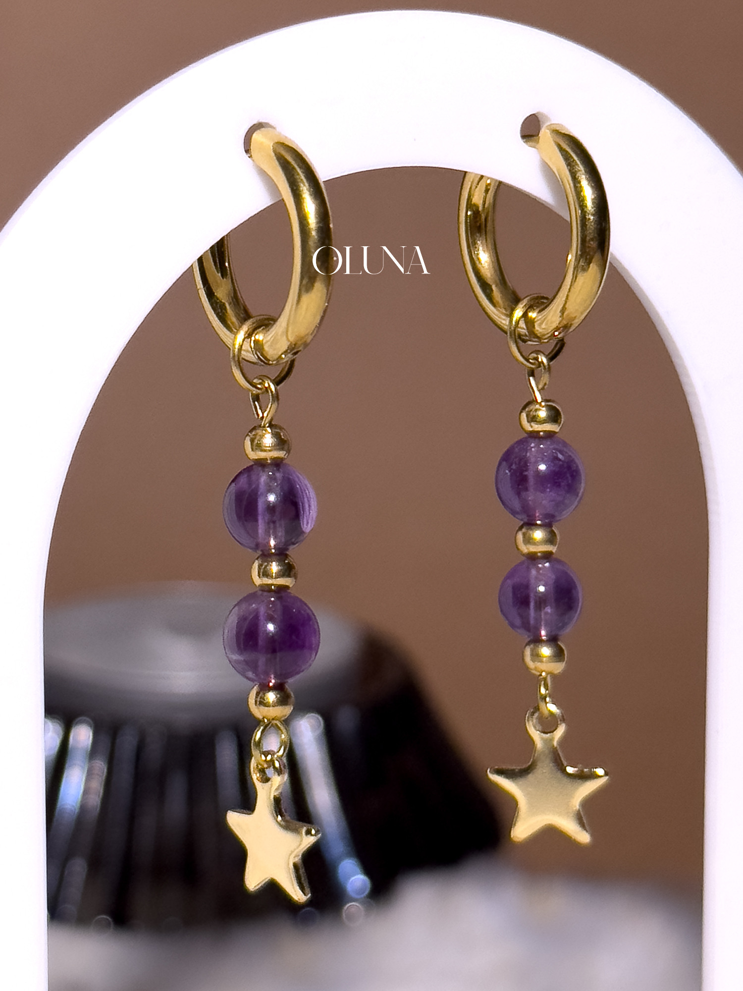 Créoles Améthyste Nora - Acier Inoxydable doré