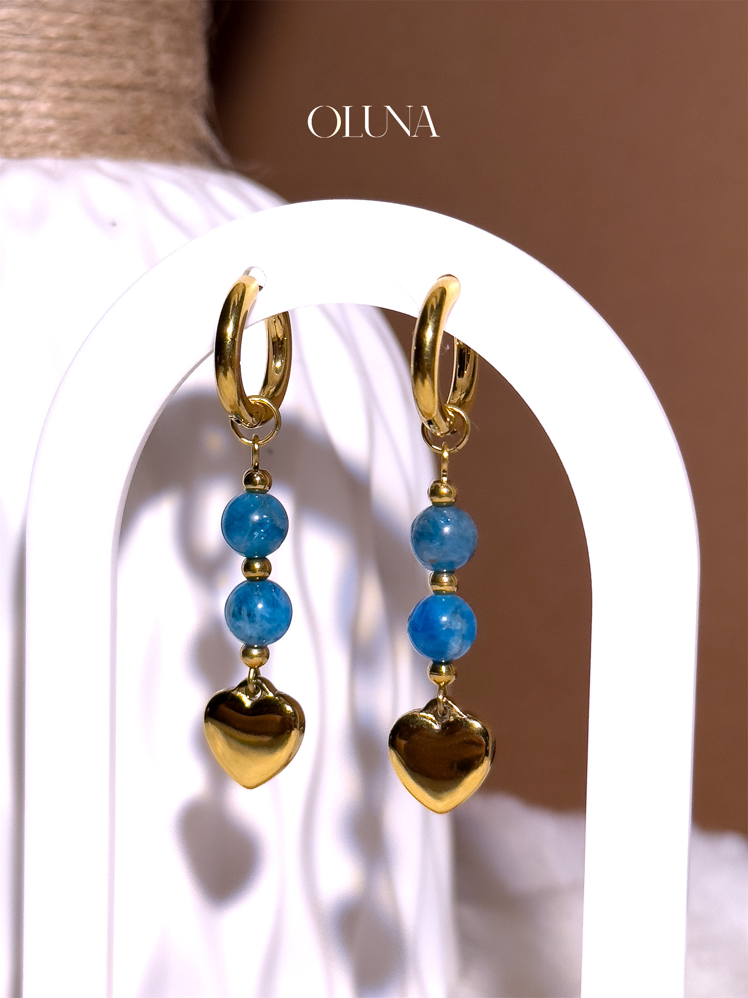 Les créoles Apatite Bleue Sia stimulent la créativité, la clarté mentale et la confiance en soi. Une paire de boucles d'oreille faite main qui soutient l’expression et la motivation au quotidien.