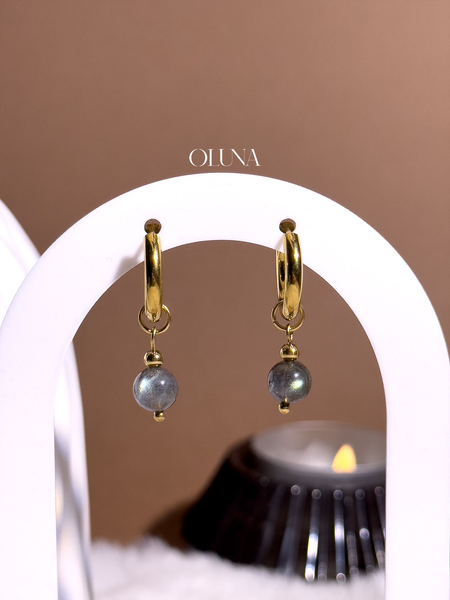 Les créoles Labradorite "Clara" protègent des énergies négatives tout en révélant votre lumière intérieure. Un bijou parfait pour celles qui cherchent un soutien énergétique au quotidien.