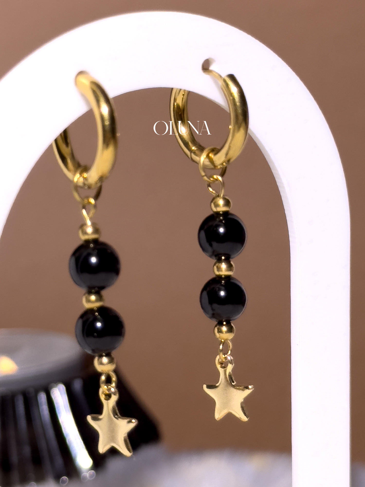 Créoles Obsidienne Nora - Acier inoxydable doré
